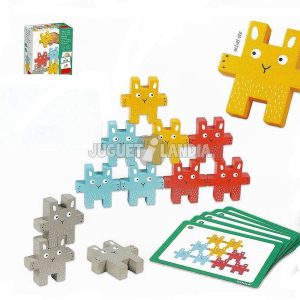 V igri je vključeno: 1 igralna površina, igralna kocka, 1 leseno igralno kolo sreče, in 30 lesenih piškotov.